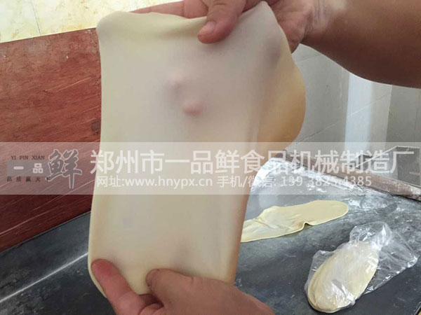 一品鮮燴面機(jī)生產(chǎn)出來的燴面坯,拉的薄的時候,就像紙一樣,能把面粉的面筋做出來。